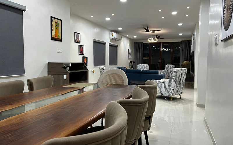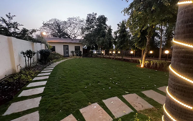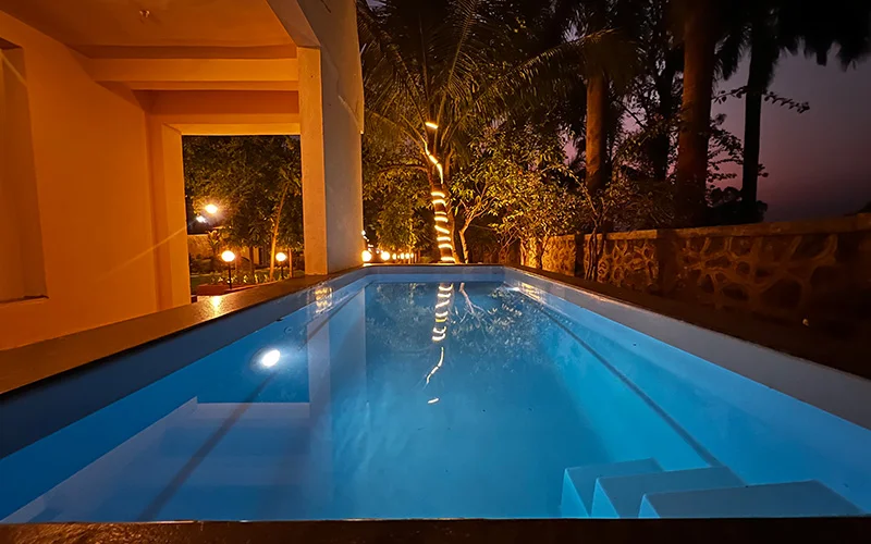 Surrounded by lush green Sahyadris, this luxurious villa offers a comfortable and modern staycation with private swimming pool in Vinegaon, an upcoming location near Karjat on outskirts of Mumbai. A perfect weekend getaway from hullabaloo of the city with your family and friends.